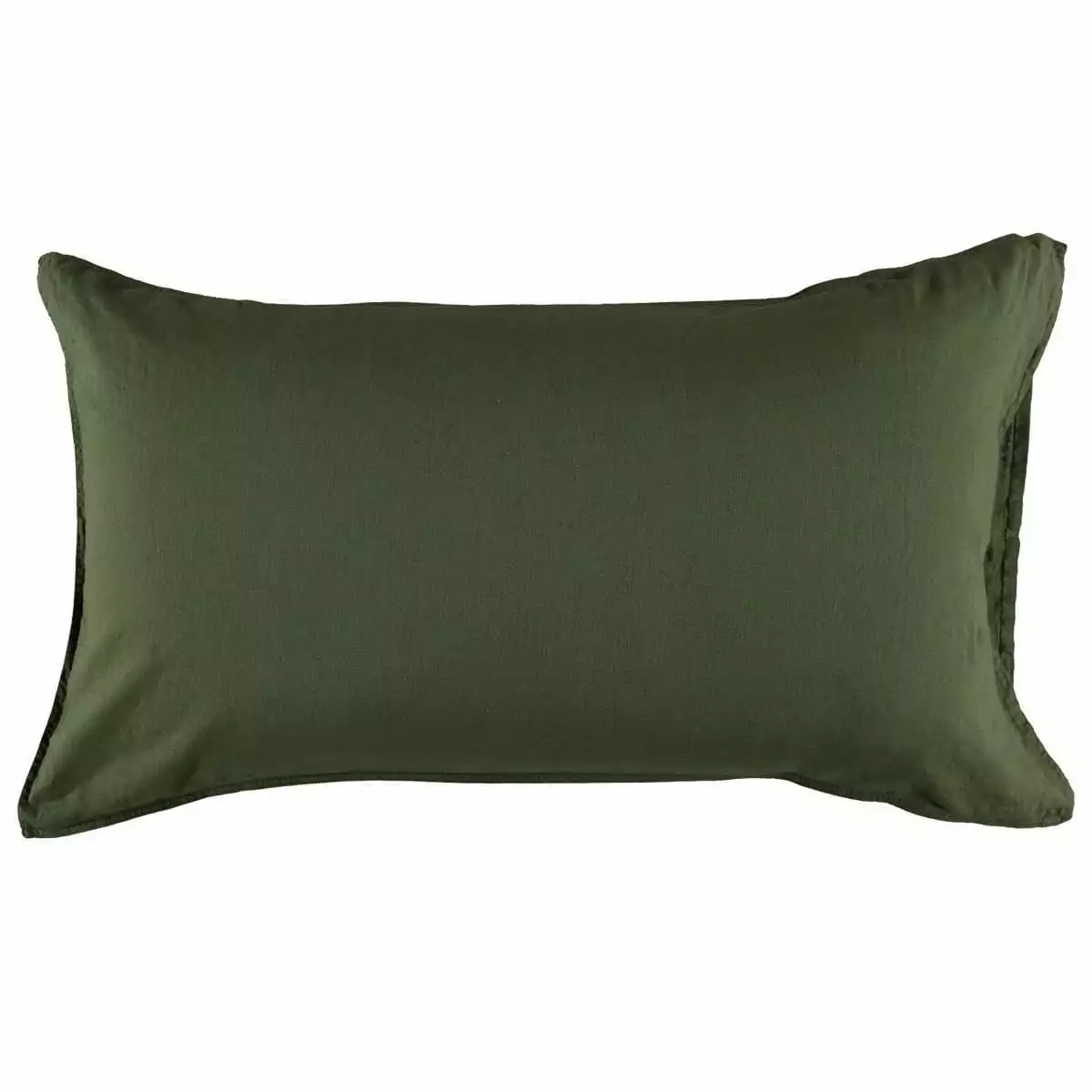 Enfärgat örngott i tvättat linne/bomull med dekorativ dubbelsöm. Tvätten ger en mjuk känsla och en fin patina blir bara finare och skönare ju mer du använder det.
