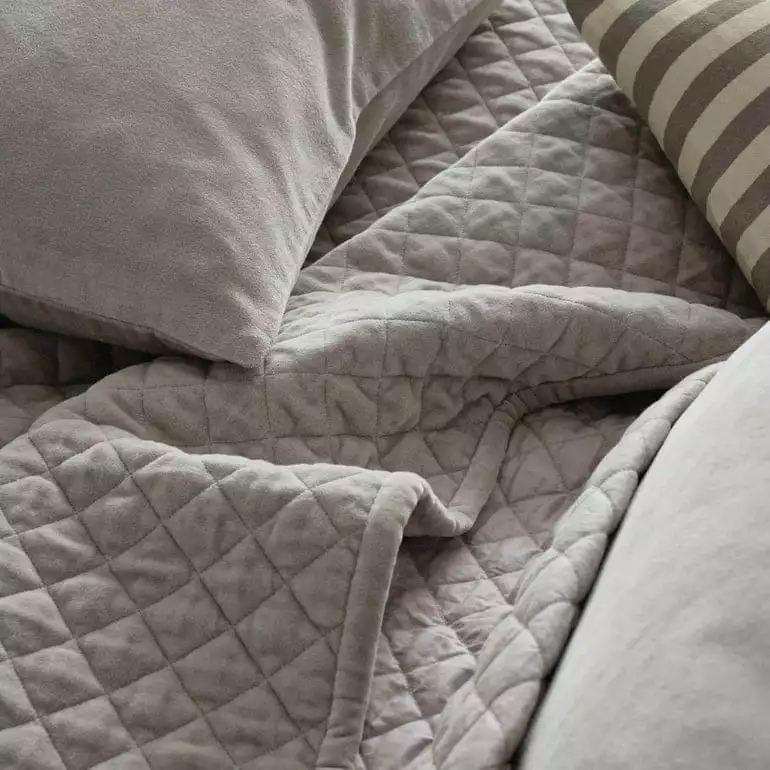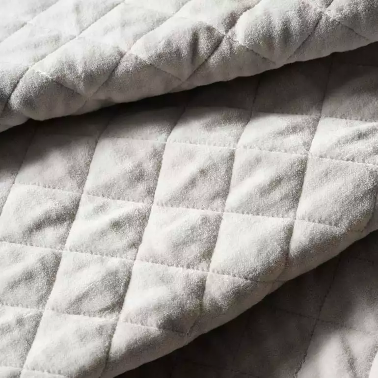 Sängöverkastet PICCOLO är precis som PAOLO tillverkat i 100% bomullssammet, vilket ger överkastet en naturlig lyster. Ytan skapar en exklusiv och modern känsla och bidrar till ett urbant och sofistikerat uttryck i sovrummet. PICCOLO har liksom PAOLO flera genomarbetade detaljer, bland annat det quiltade och tydligt tidlösa rutmönstret samt den insydda kanten.